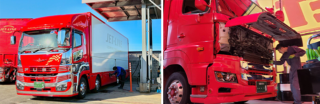 輸送業務において車輌点検は重要です。ドライバーは必ず輸送前・後には車輌点検を実施し、安全運行に備えています。