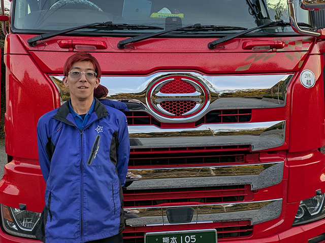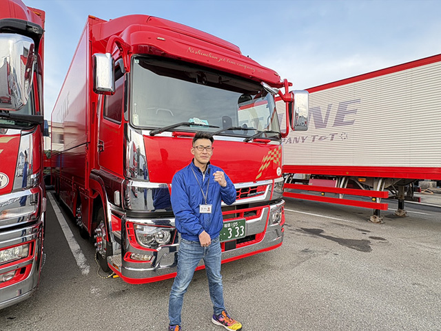 SNSや本社の先輩方の話を聞いて、綺麗で真っ赤なトラックに興味を持ち入社しました。