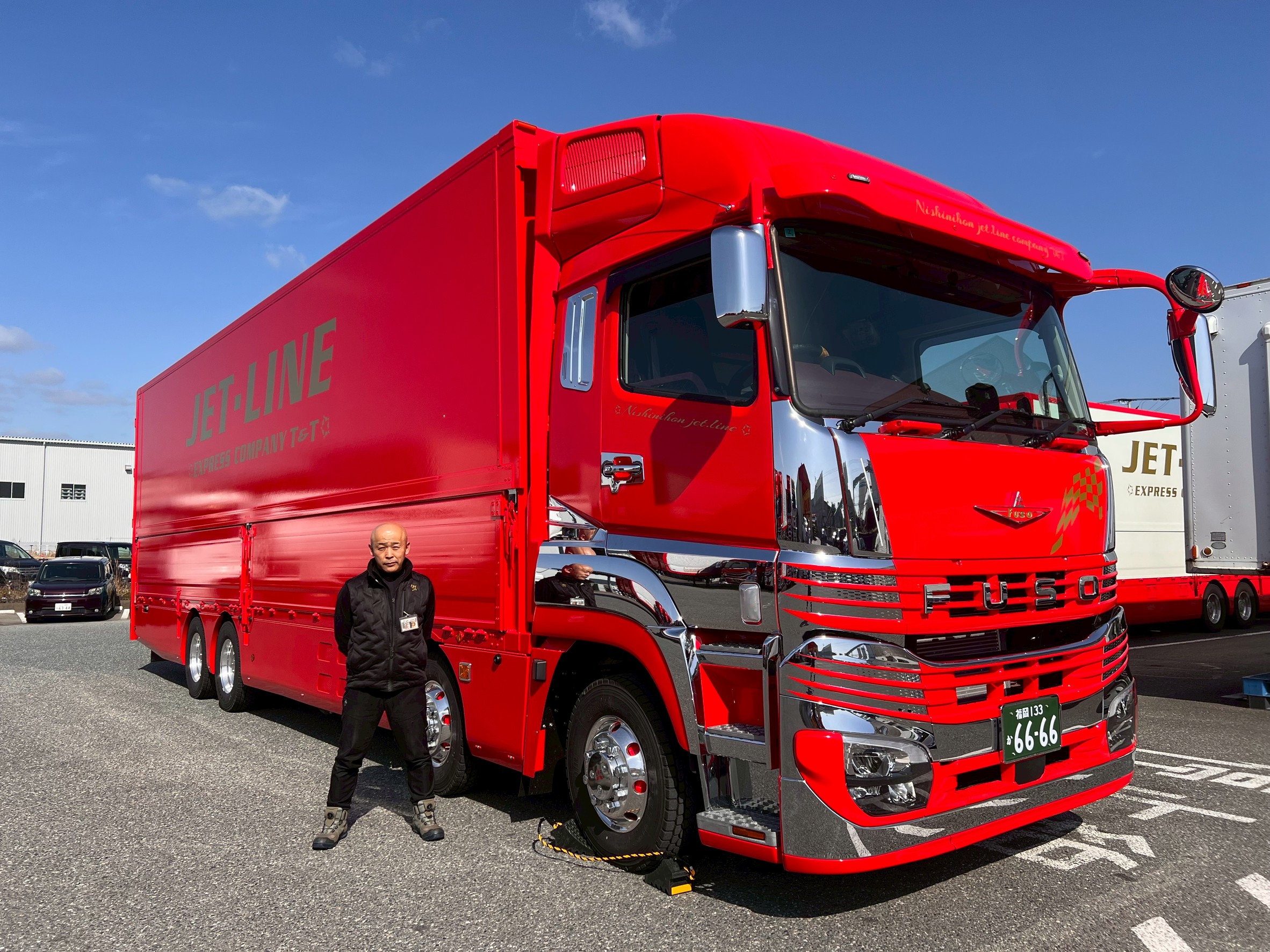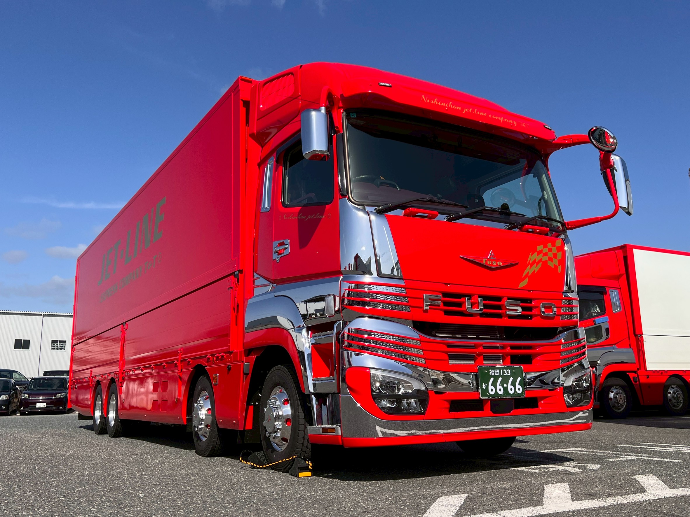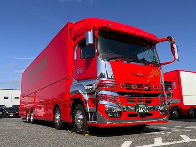 正面に輝く「FUSO」のエンブレムと、磨き上げられたボディは、私たちの“安全と品質へのこだわり”そのものです。