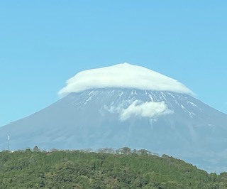富士山が雲の帽子を被ったように見えます(^^)